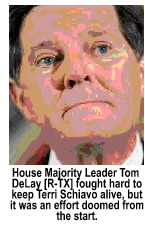 or nourishment. Delay warned the State and federal judges that Congress ''...will look at an arrogant and out-of-control judiciary that thumbs its nose at Congress and the president.'' Delay added that he "...never thought [he'd] see the day when a US judge stopped feeding a living American so that they took 14 days to die.'' After the Schiavo incident was televised almost nonstop for 13 days on satellite TV, the Euthanasia Society distributed over 60 thousand living wills. The