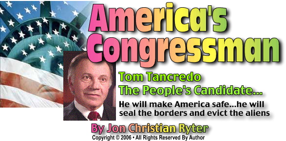 Tancredo knows there is only one way to stop, or dramatically curb the traffic of illegals into the United Statessomething we need to do today if we expect to still have an American nation and not an international country two decades from now. As Tancredo, the Chairman of the House Global Human Rights and International Operations Subcommittee knows, to stop the flow of illegals it is necessary to seal the borders, eliminate the profit motive, criminalize the act, and disallow legal migration to anyone who has committed what would be construed as a felony in the United States. First, our borders have to be sealed. America's "open-door-but don't-walk-through" policy is an invitation to those who refuse to play by the rulesyet want to live in a nation governed by rules. Second, the profit incentive has to be curbed. The Immigration Reform and Control Act of 1986 addressed that problem by creating the I-9 form which was supposed to solve that problem by targeting employers who hired undocumented workers. The punishmentif leviedcame in the form of a $10 thousand fine for each undocumented worker hired. The penalty should be a mandatory minimum two year prison term per infraction for the Chief Operating Officer of any corporation caught hiring undocumented workersand a one year mandatory prison sentence per infraction for all Chief Executive Officers. Bad corporate work ethics start at the top of the food chain, not the bottom. The character of any company is determined by the integrity of its leaders. But, as long as America's agri-giants, its construction companies or any other local, national or transnational corporation that uses undocumented labor is able to lobby Congressmen and Senators and can legally fill their campaign war chestsas Tancredo saidthat Congressman and Senator is beholden to the money, not the voter. And, that's it in a nutshell. The people of the United States needs legislatorsand presidentsthat are beholden to the voters, not the fat cats that use the taxpayers as their personal piggy banks. As voters we need to wake up. We need to start listening to Tom Tancredo. What he says not only makes sense, its the truth. Its about time we had another president with the integrity of George Washington, the intellect of Thomas Jefferson, the spine of Andy Jackson, and the charisma of Ronald Reagan. Let's do one more for the Gipper. Together we can elect any Reaganesque candidate we wanton a major party ticket. The voters can reject the party hacks by simply casting their votes for those candidates who will fight for the principles that made this nation great. That means we run them on the major party tickets where they can winand we get behind them and elect them. We forget the third party candidates who talk the talk but lack the ability to walk the walk. They're running for contributions and matching funds. Some of them, like Pat Buchanan come out of it a millionaire. And then they stop running. Tom Tancredo can win because his issues are the issues of the American people. In 2002, because of his anti-amnesty, hardline immigration policies Tancredo was told by Karl Rove that he was not welcome at the White House (even though President George W. Bush was obligated to invite him to a White House bill-signing regalia shortly after Rove told him not to call). Democrats, who pretend to be against amnesty when they actually favor it, criticize him for his anti-immigration views, claiming he is stoking racism and anti-Americanism. GOP globalists claim he is alienating Hispanics in States like Florida, California, Texas, Arizona, and New Mexico who would vote Republican if we opened the border. Tancredo admits he's burning a lot of Republican Party bridges but says if he's going to wake up this country and make a national issue out of something that previously was viewed by the political pundits as a State issue, he has to ruffle some feathers. And that's what we need in the White House...a president who's not afraid to ruffle some feathers.