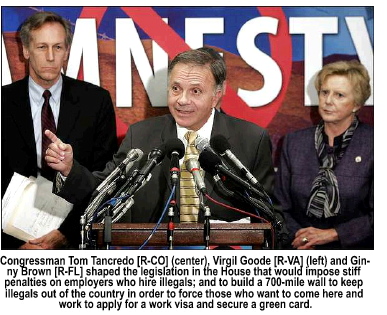 After three amnesties since 1986, President George W. Bushlike the Democrats in the House and Senateis being pushed by the labor unions (that have never supported him) for still another amnesty program. But the primary pressure on Bush and the GOP is coming from Wall Street, the Fed bankers and the World Trade Organization. The WTO is fighting to open the borders of every nation in the world as they transfer the industrial strength of America to the third world where the human capitalthe unemployed, impoverished masseswho will become tomorrow's consumers eagerly await the jobs that are being exported from America's urban centers to provide them with the income needed to replace the American consumer as the world's most sought after shoppers. About 1.25 million illegals per year become permanently entrenched in the American economy. None of them become taxpayers although all of them reap the benefits of the sweat equity of lawful taxpaying citizens through welfare programs and other societal benefits including public school and tuition credits to attend local colleges and universities. Every four years another 5 million illegals burrow themselves into the American economy. In the last 12 years, 12 to 15 million more illegals entered the country. Under the bill passed by the House, those who enter the country illegally would be guilty of a felony. Once again, the US Senate is talking alien-amnesty. While the House bill correctly zeroed in on closing and sealing our borders and punishing those who hire illegal aliens as a means of discouraging illegals from entering the country, the Senate voting the will of their private constituency, the labor unions and bankersis offering amnesty. Where the House bill would criminalize entering the United States illegally, the Senate version would allow those same illegals citizenship with a pricepaying back taxes on the incomes thoy earned working under-the-table. The Senate version of the bill that is favored by Bush would legalize the status of 9.3 million Hispanics while causing another 2 to 3 million to be deported. But, in the 11th hour, Senate Republicans, fearful of voter backlash in November, killed the measure which Senate Minority Leader Harry Reid said was a bill he believed Senate Democrats could "dance to." A one-time amnesty The president called his amnesty bill a "one-time amnesty." Reagan called it the same thing. So did George H.W. Bush in 1990 with the passage of the Immigration and Naturalization Act of 1990 which expanded the number of immigrants who could legally enter the country. Congress mistakenly believed that by increasing the number of aliens who could legally enter the country, there would be fewer illegals. Bill Clinton also believed in a one-time amnesty, but not with the passage of the Immigration Control Act of 1993 that created a computer system that would trap illegals by verifying the Social Security numbers and INS status of prospective employees before they could be hired. Clinton used an Executive Order to waive citizenship requirements in 1996, and offered a blanket amnesty to 5 million illegals by granting them citizenship. And, finally, President George W. Bush also called his Guest Worker Program a "one-time" amnesty. What each of these presidents did was akin to discovering your party has been infiltrated by scores of people you didn't invite and don't want; and inviting them to stay only because you don't know how to get rid of themand you believe if you formally invite them, they will bring gifts. The tragedy here is that if we don't solve the problem very quickly, we will relive this "one-time amnesty" offer every six or seven years until the amnesty-citizens are the majority population of the United States and the laws coming from the nation's capital open the door to Mexico wide and the key is thrown away. Mexico will have conquered America without firing a shot. Solving the problem Tom Tancredo is one of a small handful of Congressmen and Senators who realizes the problem will not improve by offering illegals amnesty since it is the expectation of amnesty that brings them. A illegal alien shelter manager in Arizona, Francisco Loureiro, noted that he had not seen such a rush of migrants since 1986 when the Reagan Administration let 3.6 million illegal residents get American citizenship. This time, he said, the draw is the new Immigration Reform bill that, in addition to tightening the border, will offer citizenship prospects to between 11 and 13 million illegals. "Every time there's talk in the North of legalizing migrants," Loureiro said, "people get their hopes up. But they don't realize how hard it will be to cross." Tancredo responded: "Proponents of McCain-Kennedy can call their plan whatever they likeearned legalization, a path to citizenship, bringing people out of the shadows, and similar euphemismsbut illegal aliens aren't stupid. They know amnesty when they see it. And rewarding illegal aliens is amnesty with a capital 'A'. Once again, we have empirical proof to show that rewarding illegal behavior encourages more of the same. New illegal aliens know that they can forge documents to make it look like they've been in the United States for years. And, illegal aliens know our government's record well. They know this won't be the "last" amnesty. Our government must show a good faith effort to secure our borders instead of keeping our doors wide open to more illegal aliens." Tancredo is right. The policies of the past six presidents has been to leave the door open wide and ask those who want to come in not to enterand then not only not closing and locking the door, but leaving the door virtually unattended as we expect the impoverished of other nations who view America as the Garden of Eden, to stand outside the Garden looking in without stepping across the threshold. Tancredo also recalled the comments of Juan Hernandez the former Minister for Mexicans Living in the United States. Tancredo said Hern