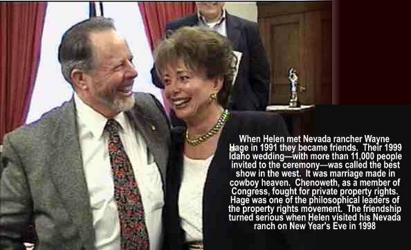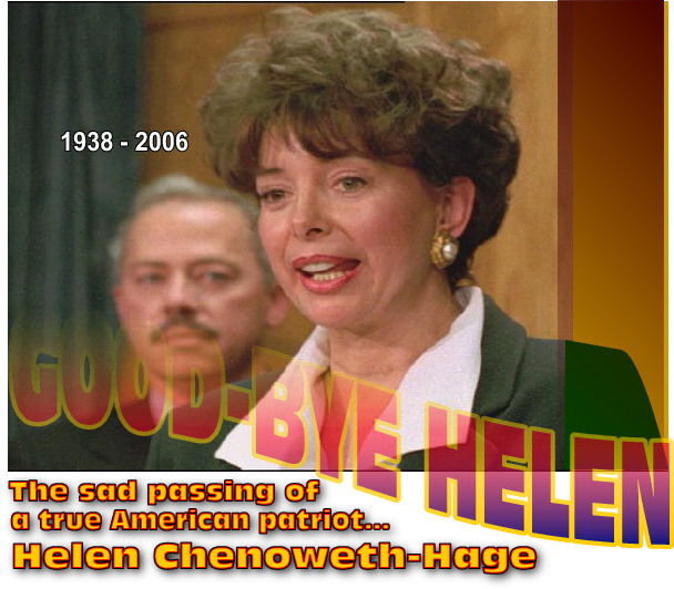 A true American patriot died on Monday, October 2 in a one-car crash near Tonopath, Nevada (172 miles northwest of Las Vegas)and America barely noticed. ABC, CBS, NBC nor FOX did not interrupt regular programming to note the passing of Helen Chenoweth-Hage. There was no brief eulogy on FOX News, MSNBC or CNN. The major liberal media was completely devoid of even a three or four line news blurb about her passing on Tuesday. A few western newspapers covered her death, and ABC included the AP wire service story on their website. But no major newspaper in the country thought the tragic death of a popular Congresswoman was worth the filler space. FOX Newswhich is hawked by the left as the media of the rightsadly, did not think the death of former three-term Idaho Congresswoman was worth an additional 15-minutes of fame. Chenoweth's daughter, Megan Chenoweth-Keenan, provided details of her mother's death to the media. Chenoweth-Hage, an arch-conservative lawmaker who was idolized by the militia movement, was the passenger in a car driven by her 24-year old daughter-in-law Yelena Hage, and Hage's 5-month old son, Bryan as well as other family members. Details of how the accident occurred were not released to the media. Nevada Highway Patrol trooper Rocky Gonzalez only said that Chenoweth-Hage was holding the baby in her lap, and that the former Congresswoman was not wearing a seat belt. Chenoweth-Hage and her grandson were thrown from the car on impact. She managed to shield the baby who miraculously suffered only minor injuries. Chenoweth-Hage was pronounced dead at the scene. No one else was seriously injured. Born in Topeka, Kansas in 1938, Chenoweth-Hage grew up in Grants Pass, Oregon. She attended Whitworth College in Spokane, Washington before moving to the Idaho lumber town of Orofino where she worked at Northside Medical Center. Getting the political bug, she moved to Boise in the 1970s when she became the Executive Director of the Idaho Republican Party, and later, as Chief of Staff for US Congressman Steven Symms. In the 1980s the darling of the right had a five-year affair with a married man that would come back to haunt her during her third and final political campaign. (Chenoweth made a three-term pledge when she campaigned for the House of Representatives in 1994, and was one of a handful of conservatives elected during the Republican Revolution who actually kept her word.) Helen Chenoweth ran for Congress in 1994 against Idaho incumbent Democrat Larry LaRocco and gained national attention when she held "endangered salmon bakes," serving canned salmon and ridiculing the listing of Idaho salmon as an endangered species during fundraisers. Challenging her in 1998as he did in 1996was Dan Williams, a Boise attorney who had served as an aide to former Democratic Idaho governor Cecil Andrus during his second term. The battle between Williams and Chenoweth was a battle between urban growth (Williams' position) and protecting the rights of Idaho's ranchers and landowners (Chenoweth's position). Chenoweth was clearly winning. Williams' introduced Chenoweth's illicit affair into the race. Liberal smear websites sprang up all over the Internet as smear jockeys painted Chenoweth as Harlot #1. It was the nastiest political campaigns of the season. When the dust settled, Chenoweth won her third term by a margin of 6,500 votes. When she retired from the House, Chenoweth-Hage did not retire from politics. She traveled throughout the northwest with her husband fighting for private property rights and to curtail the federal government's ownership and control of public lands. While attending a field hearing on "forest health" in Montana where she was scheduled to speak in September, 2000, she was hit in the face with a "pie" made from rotten salmon. The meeting was adjourned long enough for the former Congresswoman to clean salmon flakes from her hair and jacket. When she finally took the podium, she joked: "I would like to say that I find it amusing that they used salmon. I guess salmon must not be endangered anymore." In 1995 Chenoweth called for the disarming of federal resources agents after they landed black helicopters (which are actually a dark brown color) on private land in eastern Idaho to enforce the Endangered Species Act on the intimidated landowner. Later, Chenoweth was forced to admit that she had never seen a black helicopter on private land in Idaho. And, of course, we all knowaccording to the leftif the right doesn't have photographic proof of an event, it must not have happened. In 1999 Chenoweth married Wayne Hage, the Nevada rancher who epitomized Nevada's sagebrush rebellion as the leader of that State's fight for private property rights and curbing oppressive laws designed to strip landowners of the use of their own land. Hage held a master's degree in livestock management from the University of Nevada-Reno. The media described Hage as a "...blend of old-school frontierism and intellectualism." Hage's first wife, Jean, died in 1997. She was buried in a meadow she loved behind the ranch house Hage shared with his new bride in 1999. When Helen and Wayne married in 1999, Chuck Cushman, Executive Director of the American Land Rights Association said when the congresswoman retired he expected to see her continue her penchant as a firebrand for the conservative cause. "I don't see either one of them riding off into the sunset anytime soon." Both rode off into the sunset far too soon for the American right. Hage died in June of this year. Helen Chenoweth-Hage, the firebrand of the right, died without any media fanfare on Monday, October 2, 2006. Cushman was wrong about one thing. He was convinced that even if Wayne and Helen Hage rode off into the sunset, "...they won't do it quietly." But quietly they did. And that is a real American tragedy. Helen Chenoweth's funeral will be held at 2:00 p.m. MDT, Monday, October 9th. The funeral service will be at the Capital Christian Center, 276