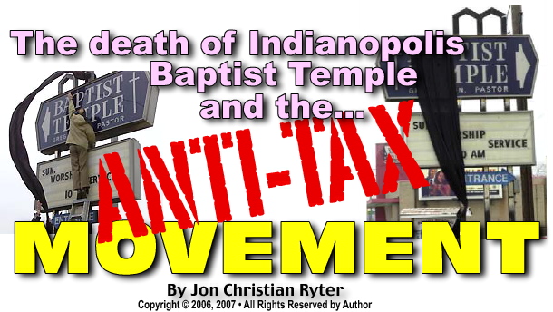 the tax fires, postulating a broad range of anti-tax arguments. And, finally, [3] in protest, IBT willingly relinquished its tax exempt status as a church/charity, thus creating its own tax liabilities as a for-profit business enterprise called the Indianapolis Baptist Temple. There is no tax exempt status in the tax code known as "unregistered churches." Dixon's lawyers argued before the 7th Circuit that IBT relinquished its 501[c]3 standing and became an unincorporated religious society when it redefined itself as a "New Testament Church." That decision was based on Dixon's personal beliefand not any sound legal advise from a competent tax attorneythat because Jesus Christ was the sovereign head of the New Testament Church, IBT could legally reject secular government authority. It was at this point a government report notes, Dixon stopped filing federal employee tax returns and paying federal employment taxes. There are a myriad of reasons why anti-tax advocates claim the government cannot require you to pay federal income taxies. The reasons are as varied as the seminars offeredfor a feeby the anti-tax advocacy groups themselves. None of the arguments are valid since all of them have been tried, testedand failed in the courts were tax seizures are affirmed. Each begins with the same basic truth: the 16th Amendment was fraudulently declared ratified in 1913 because the bankers who were creating the Federal Reserve System needed to bind the taxpayers to the debt they would be forced to pay. That is a fact. But it's the only fact in the argument advanced by the anti-tax crowd. Among the arguments advanced by the anti-tax crowd that American citizens not required to pay taxes are statements like: