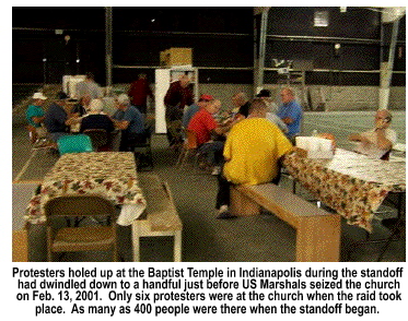 On Sept. 6, Barker gave IBT ten days to show why the government should not be granted the right to foreclose on the church's assets. The deadline passed without any action taken by the IRS until Sept. 29 when Barker issued an order for Dixon to vacate the property and surrender it to the IRS for a tax auction sale on or before Nov. 14. While both sides wanted to end the confrontation without violence, the Clinton Administration had the most at stake since Vice President Al Gore, Jr. was running against Texas governor George W. Bush for the presidency, and they could not afford another Waco or Ruby Ridge some 60 days before the voters cast their ballots for the 43rd President of the United States. Dixon, on the other hand, hoped to find a peaceful solution that would allow his family to retain his church building. On Nov. 7, 2000, US Supreme Court Justice John Paul Stevens turned down a request from Dixon's lawyers to delay enforcement of the order to vacate. On Nov. 14a week after America elected its 43rd president and 29 days before America would learn who it wasmore than 600 patriot supporters and church members gathered at the Indianapolis Bible Temple to await the US Marshals. Only none showed up. Waco still left a sour taste in Bill Clinton's throat. And, even though Attorney General Janet Reno took the hit for Waco, the tragedy in which 76 Branch Davidians died on April 19, 1993 actually hatched in the fertile mind of Hillary Rodham Clinton. Bill Clinton decided to let his successorwhether Bush or Gorehandle the mess at the Indianapolis Baptist Temple. The stalemate continued. On January 16, 2001, four days before George W. Bush was sworn in as the 43rd President of the United States, the Supreme Court declined to hear the Baptist Temple case, ending Dixon's legal options. It was now a case of pay up or get out. The first task that fell on the shoulders of incoming Attorney General John Ashcroftan Assembly of God Pentecostal Christianwas the tax confiscation of IBT. Ashcroft knew that the IBT employees paid their own taxes on what IBT called "love offerings" rather than wages. However, he did not seem to be aware that the IRS declined to accept the tax filings of church employees and refunded the taxes they paid in order to tack those amounts on the moneys owed by IBT and pastor Greg J. Dixon. Dixon exacerbated the standoff by telling the media that he would never walk