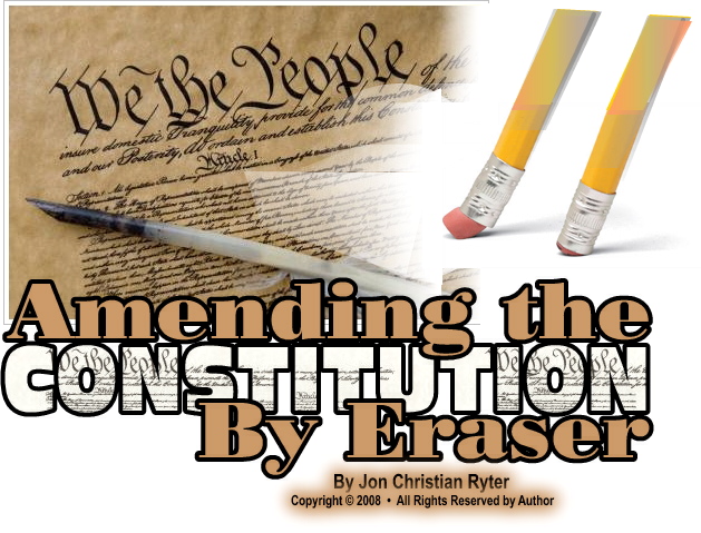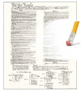 When the Susan B. Anthony Amendment (the 19th Amendment) was offered to the 67th Congress, language to degenderize Article II was added in the Senate version, but was almost immediately stripped from the resolution because moderates in both the House and Senate knew the measure, offered several times since 1868, would never pass with that language in it. The 2003 Equal Opportunity to Govern Amendment, which was touted as an amendment to repeal the "natural born citizen," clause also degenderized the office of the presidency. The amendment, referred to the "Schwarzenegger Amendment" was actually the "Hillary Clinton Amendment." Schwarzenegger publicly asked that his name not be associated with the debate. The amendment failed. Yet, Hillary Clinton entered the presidential race of 2008 as the Democratic front-runner, and Gov. Sarah Palin [R-AK] became the Republican vice presidential running mate. Again, the magic eraser was applied to erase the gender from Article II. Ask anyone you bump into on the street if they believe a woman can legally seek the office of President. Without batting an eye, 97% of those you ask will say "yes." By practice, the "magic eraser" degenderized Article IIwithout the need to ratify an amendment that failed to clear the hurdles in Congress everytime it was attempted. While the Constitution of the United States gave Congress the prerogative to change the day (singular) when votes are cast for the President of the United States, it designated the first Tuesday after the first Monday in November every four years as the day when votes shall be cast. Specifically, the Constitution mandates that the "...day shall be the same throughout the United States." In other words, while it is convenient for civil rights activists to push for State laws that allow early voting where people who are not legally eligible to vote can vote with minimum scrutiny from election officials, the Constitution trumps State lawor local party politics. Constitutionally, votes are to be cast for the President of the United States on only one day every four years. While Congress has the right to change the date when votes for the President are cast, it does not have the rightwithout the ratification of a constitutional amendmentto expand that one day into many. Nevertheless, the politically-correct "magic eraser" was used to add from one to two weeks to "election day" by arguing that some people might lose their right to vote if they have to wait in line and cast their ballot on constitutional election day. When that tenet was added to the Constitution, the voters were spread all over the countryside. None of them had cars to speed to the voting precinct to cast theri vote on election day. They traveled by cart, wagon, horseback or mule to vote. And, by the time the polls closed on election day, everyone who was eligble to vote and everyone who wanted to vote, voted. Expressing empathy that the masses may not be reaching the polls in time to have their votes counted, it seems not to have dawned on the bureaucrats to simply add more polling places on election day. However, making sure that eligible voters were able to vote that was not the real reason for the early voting. Applying the "magic eraser" to the Bill of Rights is not a new trait. It actually began on July 14, 1798. On that date, President John Adams signed the Sedition Act of 1798 into law making it a crime to criticize the President of the United States, thereby outlawing free speech in the United States only ten and a half years after the ratification of the Constitution of the United States. In 1801 the States repudiated the Sedition Act of 1798 with the Kentucky and Virginia Resolves, taking the federal government to task for violating the Bill of Rights and reminding the federal government that the States held the power to nullify any law written by Congress if it exceeded its narrow authority under the Constitution. The next major assault on the Bill of Rights occurred on March 9, 1933 when Congress began the practice of voting on legislation that [a] was not written by Congress nor [b] read by them before being enacted into law. On March 9, within 12 hours of its introduction to Congress, the Emergency Banking Relief Act of 1933 was signed into law by President Roosevelt. After 40 minutes of debate from both sides of the aisle, Congress enacted the Emergency Banking Relief Act of 1933, a bill they never read, which gave the Treasury the right to confiscate all gold possessed by US citizens and replace their gold certificates and gold coins with a fiat scrip that had no inherent value. Without a constitutional amendment to remove the nation from the gold standard, the Roosevelt Administration used the "magic eraser" to surrender the nation's monetary system to private bankers. Before his administration ended with his death on April 12, 1945, Roosevelt at least partially erased the entire Bill of Rights. Among those rights he fully intended to completely erase was the 2nd Amendment. FDR became the target of