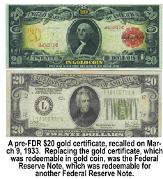 $2,195.00. While Europe's courts demanded restitution from the German government for the theft of the generational wealth of those nations it conquered, no court has ever demanded that the United States government, which stole the constitutional money of its citizens in 1933 after first declaring them to be enemies of the government to justify the theft. Unlike the fictitious Don Corleone or the real Depression era John Dillinger or Bonnie Parker and Clyde Barrow, the dons and capos in the federal government don't have to use a gun when they rob the American people, They simply enact a law that uses legalese that says, "This is a stickup. Give us your money!" Foreigners holding post-1933 US federal reserve notes were still allowed to redeem that fiat scrip for gold at any Federal Reserve Bank until Aug. 15, 1971. On that date, President Richard M. Nixon permanently closed the gold window, ending the practice of gold redemption for scrip. The Annunzio-Wylie Anti-Money Laundering Act of 1992 (resulting from the Bank of Credit & Commerce International [BCCI] drug-laundering scandal) led to an array of laws that authorized banks to spy on their customers which ultimately resulted in a law known as "Know Your Customer." Among the things banks were now required to "know" about their "customers" was how many of their "customers" were buying gold coins and/or bullion. In the event of a new gold seizure, the Secret Service (the Treasury's police force) need to know how much gold you own, and where to go to seize it. Under "Know Your Customer"Section 326 of the USA Patriot Actgold brokers were required to report the sale of pre-1965 coins on IRS Form 8300, ostensibly to safeguard them from seizure in times of a national emergency. In reality, this provision is a double-edged sword since tracking gold transactions is a prelude to confiscation. In addition to tracking who owned what coins, Section 326 initially required gold brokers to report gold sale transactions of $10 thousand or more to the IRS. To avoid having their gold purchases scrutinized by the IRS, buyers began spacing out their purchases to stay off the IRS radar screen. The IRS responded by extending the window and collectively coupling purchases so that smaller gold purchases were grouped and reported as a single buy. The reporting threshold was later reduced, first to $5 thousand, then to $3,000. What cannot currently be seized under current law are foreign gold coins except in the course of criminal cases or civil litigation, or by the IRS for nonpayment of taxes. The most common seizures of gold and silver coins are in drug raids and money laundering and Racketeer Influenced and Corrupt Organizations Act (RICO) (The Organized Crime Control Act of 1970, Public Law 91-452, 84 Stat 922, Sec. 901[a] cases. RICO is one of most the unconstitutional laws ever enforced by the federal courts because it denies the accused of due process before seizure takes place by allowing the US Attorney who plans to prosecute those accused of seizing their assets before charges are filed and long before juries find the accused guilty of a crime. By seizing the assets of those being investigated under RICO, the government intentionally makes it difficult for the accused to financially mount an adequate defense. In the case of the auto surf industryone of the most profitable get-rich-quick multilevel marketing stratagemsthe government used RICO to seize the operating capital of the autosurfers so they couldn't pay their subscribers, triggering fraud complaints by the subscribers which would then allow the government to pursue the autosurf owners with criminal charges. Federal law defines a ponzi scheme as an entity with no primary revenue stream other than the contributions of new members to pay existing members. By government's own definition, the Social Security system is now a ponzi scheme. In other words, government does not play by the rules it makes. Which brings us back to gold. And, gold brings us back to Franklin D. Roosevelt and Section 5(b) of the Emergency Banking Relief Act of 1933. Amending Section 5(b) retrofitted the Trading With the Enemy Act to construe the People to be enemies of the government, thus allowing the government to seize the gold that was legally-owned by the citizens of the United States moments before Roosevelt signed Presidential Proclamation 2039. With the stroke of his pen, FDR criminalized the private ownership of what was "legal tender money" just before he scribbled his name on his illegal edict. What made Presidential Proclamation 2039 illegal? This clause in Presidential Proclamation 2039: "Whereas it is provided in Section 5(b) of the Act of October 6, 1917 (40 Stat. L.413) as amended, That the President may investigate, regulate, or prohibit under such rules and regulations as he may prescribe, by means of licenses or otherwise, any transactions in gold or silver coin or bullion or currency***..." Section 5(b), as amended, of the Trading With the Enemy Act allowed the president, at his discretion, to seize the assets of enemies of the United States found within the United States. Exempted from the provision in the original legislation, were the citizens of the United States. At 12:00:01 a.m. on Mar. 6, 1933, 12 hours before he was sworn in as President of the United States, FDR issued Presidential Proclamation 2039. But, it was not until March 9, 1933 that Section 5(b) of the Trading With the Enemy Act of 1917 was amended. No provision in law existed on March 6 that allowed Roosevelt to seize the lawful money of the citizens of the United States. What does that mean? It means you can't trust the federal government. Especially today. Do you remember when former House Speaker Nancy Pelosi prodded the loyal members of the Democratically-controlled House of Representatives in the 111th Congress to "...hurry up and vote on" the Patient Protection and Affordable Care Act of 2010 so they could "...find out what's in it"?