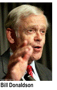 banks by restoring the Uptick Rule. Donaldson replied that hedge funds use private pools of capital. "They originally started out as a way of investing by both going long and short stocks, supposedly market neutral, as they say. But through the years, the name "hedge fund" has been applied to any pool of capital that is not registered with the SEC...Latest figure's $1.7 trillion of money in hedge funds todaythat's ten times growth in less than ten years. Through a quirk in the regulatory structure, hedge funds are not regulated like mutual funds are, or like investment advisors are, or like investment managers and brokerage firms are. This is," Donaldson continued, "just crazy that we can have, you know, $1.7 trillion dollars.. On some days, hedge funds account for 50% of the volume on the New York Stock Exchange...We ought to at least understand what's going on...and the risks...But the real issue is everytime a hedge fund buys or sells something..." it impacts the public, it impacts institutions and it impacts the market. What Donaldson did