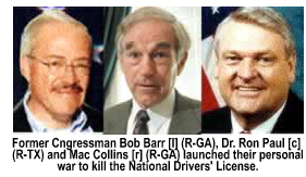 in the future. Funding this infringement on States' rights by the NHTSA was not viewed by the federal bureaucracy as a problem since the costs for upgrading drivers' licenses falls on the States. And, although Congress passed the Unfunded Mandates Reform Act of 1996 (Public Law 104-4) to prevent the federal government from forcing the States to foot the bill for costly bureaucratic federal programs and regulations when the cost to the States to comply exceeds $100 million (collectively). The NHTSA did another sleight-of-hand and projected the cost of standardizing drivers' licenses nationwide at only $72 million. NHTSA documents show the government made their projections based on the average cost to implement the program in 5 sparsely populated States. In reality, the cost to implement the program in California, Illinois, Michigan, New York and Texas alone would be almost double their estimatewell over $200 million. In an Open Letter to Congress on July 15, 1998, Dean said, "...This plan pushes us to the brink of tyranny, where citizens will not be allowed to travel, open bank accounts, obtain health care, get a job or purchase firearms without first presenting the proper government papers. The authorizing section of the law and subsequent NHTSA proposal is reminiscent of the totalitarian dictates of the Politburo members of the former Soviet Union, not the Congress of the United States of America." Congressman Barr said as much himself. "This is not some theoretical exercise. This is a very real, very serious problem with practical ramifications for every citizen in our country, ranging from everything from gun control to bank accounts to government [control] over travel to seeing a doctor or enrolling child in school. Once this program goes into effect, if we allow it to, then the government will be able to not only track everything that an American citizen does, but they will be able to stop citizens from doing certain thingsif we don't do something very quick. We will be faced with a government that is all-powerful, and an executive branch that can override either of the two branches of government at will." Impressed with Bob Barr's stance, Paul Weyrich and Dean scheduled a meeting with Barr at his office on Tuesday, July 28, 1998 to see how the Free Congress Foundation could help Barr kill the funding for the government's all-purpose internal passport. Barr's opening remark stunned them. "At the moment," he told them, "there isn't anything I can do about killing the funding to implement the national ID card." He added that he was backing off as a favor to Lamar Smith. Barr said Smith did not view the national drivers' license as a threat, and wanted to give it a chance. Within a day or two, something happened to change his mind. A few days later Barr and Dr. Paul introduced the legislation to defund the national drivers' license and suspend it in bureaucratic limbo, but unable to kill the measure outright. Once introduced, the bill was shelved by the Speaker. It was not going to even get on the floor for a debate. Soon every American would be carrying a drivers' license that would be their passport to cross a state line, transact business or rent a home. Barr hit the talk show circuit. People began asking questions about the new national drivers' license. On August 4, 1998, more to appease Barr than to accomplish anything, a hearing was held in the office of the Transportation Subcommittee. Barr, Dr. Paul, Smith and several Congressional staffers attended. Barr requested that the "comment period" on the legislation be reopened. That is, of course, like discussing the changes you would like to make in the script of a movie you just watched. Barr requested that "interested parties" be allowed to reconsider the NHTSA's proposal and suggest changes, adding that "...I don't think Americans are interested in giving the federal government unprecedented power to track and identify them. Hopefully, these hearings will be the beginning of the end of efforts to create a national identification system." Barr quickly learned it wasn't going to be that easy. Barr and Ron Paul hit the talk show circuit. Smiththe shill for the leadershipand Gingrich and Gephart al denied knowing about the language that was creating an internal passport, doggedly pushed House Appropriations and Transportation Subcommittee chairman Frank Wolf [R-VA] to derail Barr's attempt to derail the national drivers' license. On Tuesday, October 6, 1998 Gingrich agreed to eliminate Barr's provision from the Transportation Bill. After an overnight battle, Barr won a temporary victorysupport from several other House members led by Majority Whip Tom Delay who met with Gingrich to demand why Smith and Gingrich were zealously pushing for something the American people vehemently opposed. Delay told Gingrich that, beginning the following morning, he would be on every talk show in America, and any chance that Gingrich had of being reelected would die. Fearful of voter backlash, Gingrich was forced to cave. Barr's measure to defund the national drivers' license was enacted. During that midnight battle, on Tuesday October 6, Newton Leroy McPherson Gingrich showed himself to be one of the most dangerous politicians in Washington, DC. Suffering from a stinging rebuke from his own party after the GOP lost five House seats in the election held on Nov. 4, 1998, Gingrich announced on Nov. 5one day after winning reelection to his 11th termthat he would not only stand down from seeking reelection as Speaker, he would resign from the House of Representatives as well. Newt Gingrich is even more dangerous today. When he left office, Gingrich formed a political consulting group called The Gingrich Group. He insists he was not a lobbyist. Newt Gingrich is wholly a product of Washington. And, by definition, he is and was, a lobbyist since 1999. Federal law defines lobbying as "...contacts and any efforts in support of such contacts, including preparati