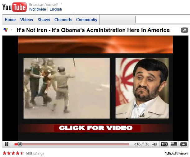 When you listen to this spot, you will immediately identify it with the the recent stolen election in Iran. Or, it could sound like Honduras or even Hugo Chavez's last election in Venezuela . Only, its not. If this commerical doesn't make sleepy Americans wake up, nothing will.